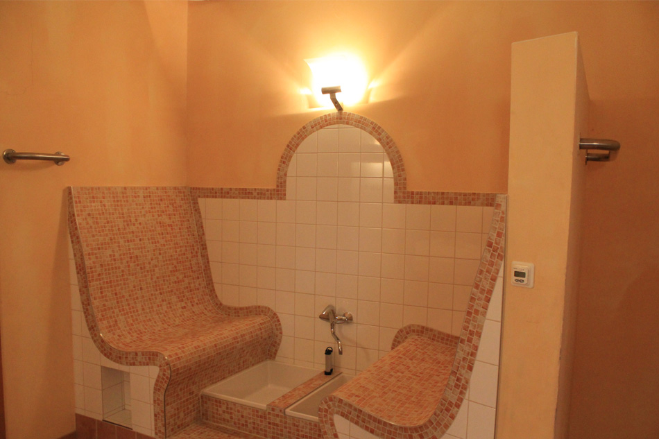 Parkmöglichkeiten direkt vor dem Gebäude und der Blick nach hinten auf Wiese & Wald. Das Herzstück bildet unsere Saunaanlage mit verschiedenen Saunen die täglich geöffnet ist.
